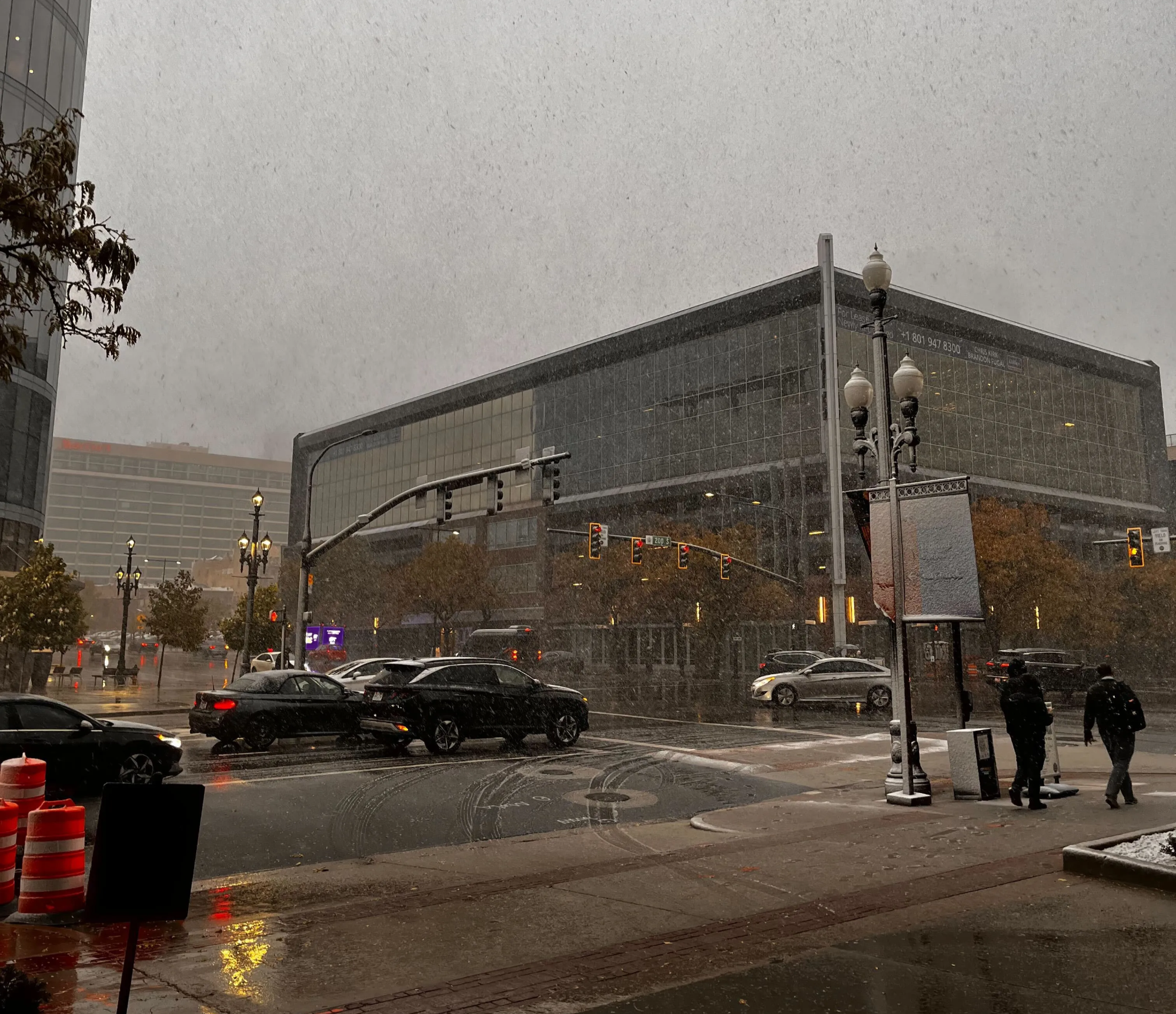 時差ぼけの影響であまり眠れず、早めにバッジを発行するために朝8時半ごろ会場に到着しました。気温は5度前後で、予報では霧雨となっていたものの、実際には大雪になっていました。