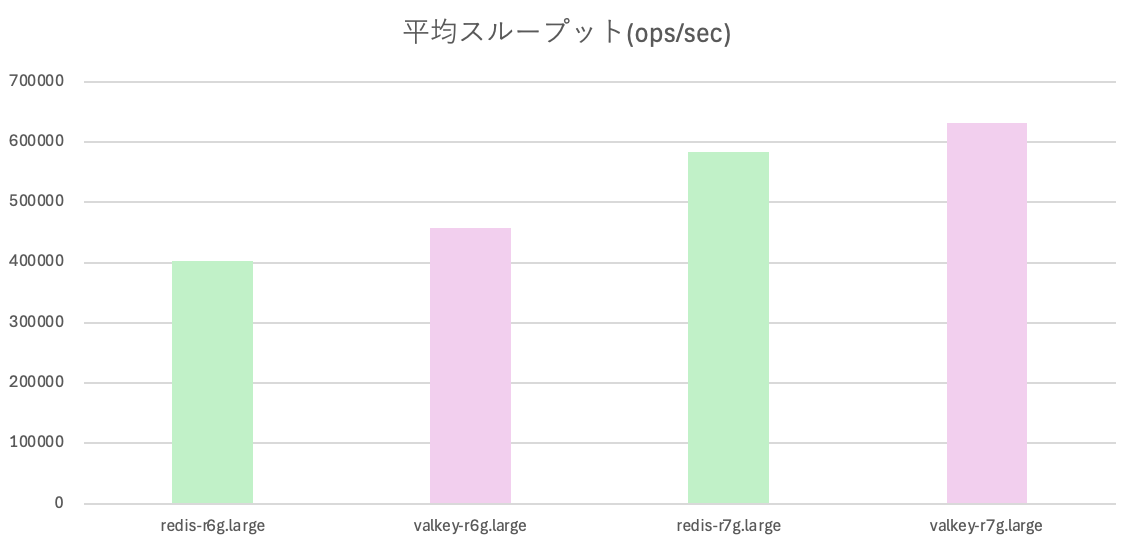 r6g同士のredisとvalkeyを比べると12%性能が向上した結果となりました。