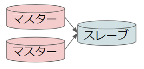 スレーブ1台が複数のマスターのデータを受け付ける構成です。