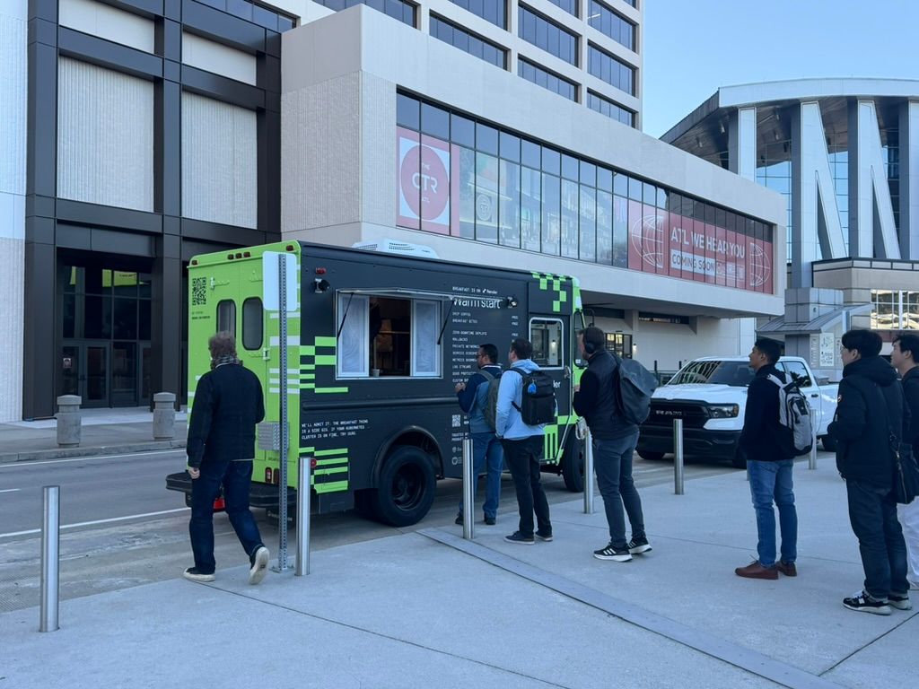 基調講演前の会場周辺では、Render社がコーヒーと軽食を配布していました。