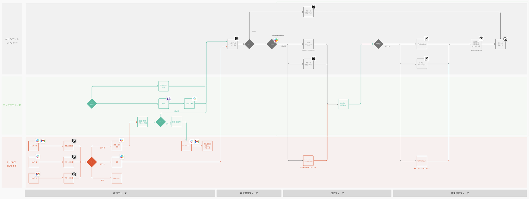- トリアージ: 影響範囲の特定、SEV(重症度)決定、体制構築