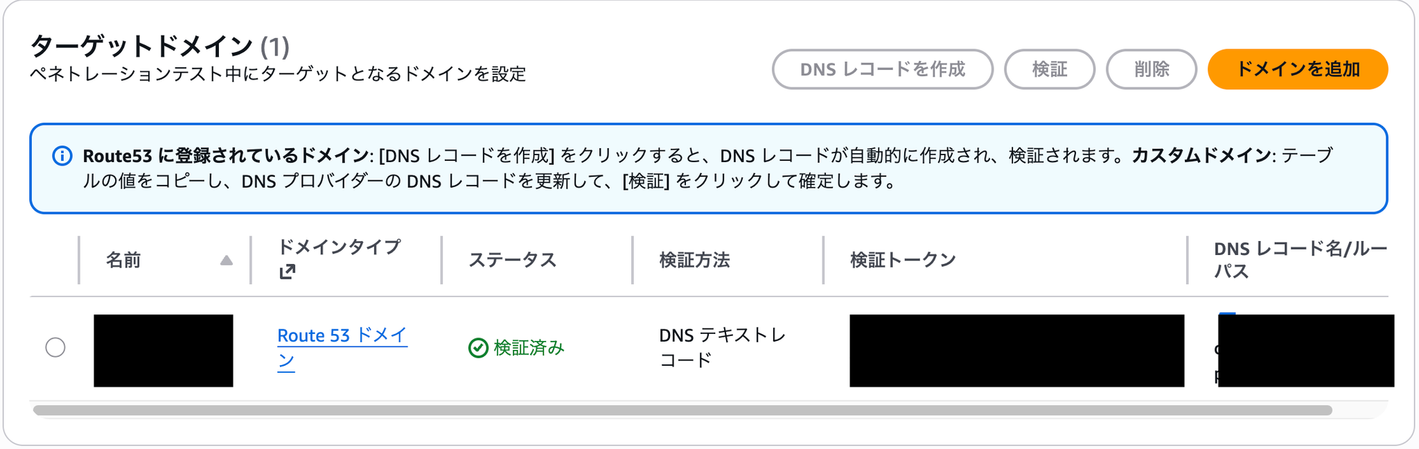 設定変更後DNSに検証用のレコードを登録することでステータスが となりました。