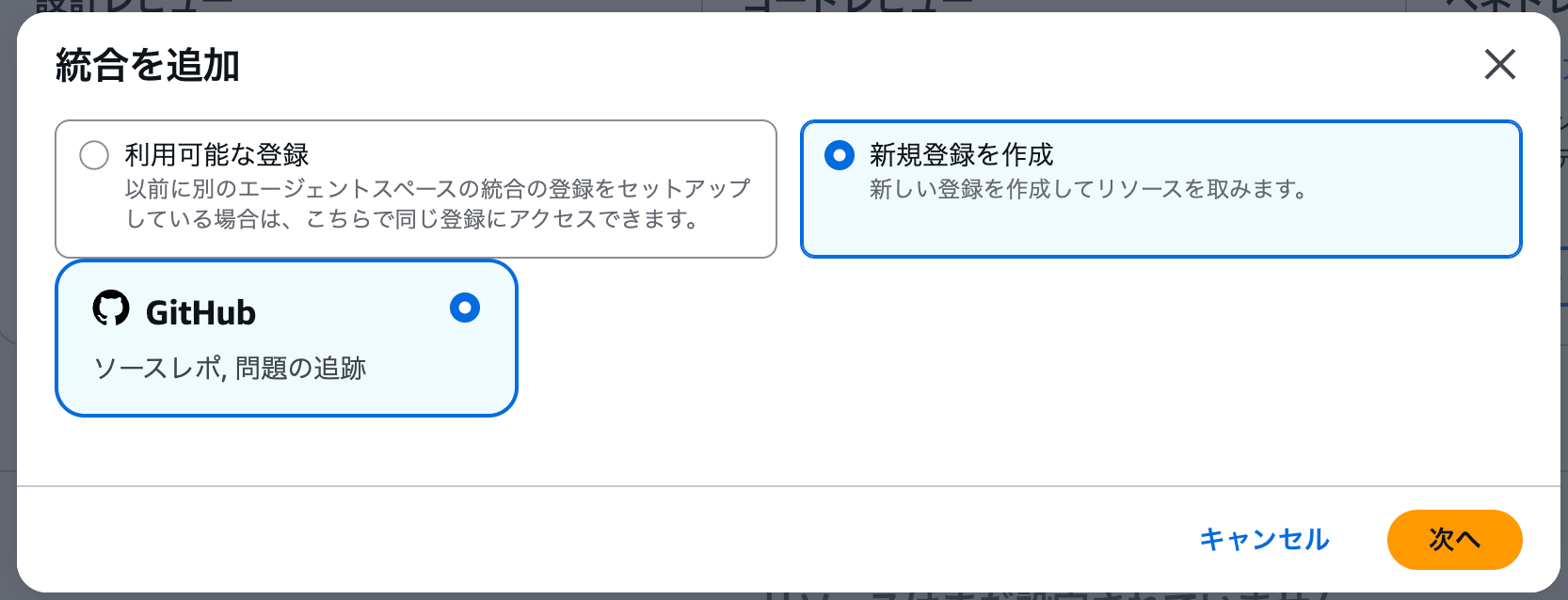 を選択すると以下のような画面が出てくるので、新規作成していきます。