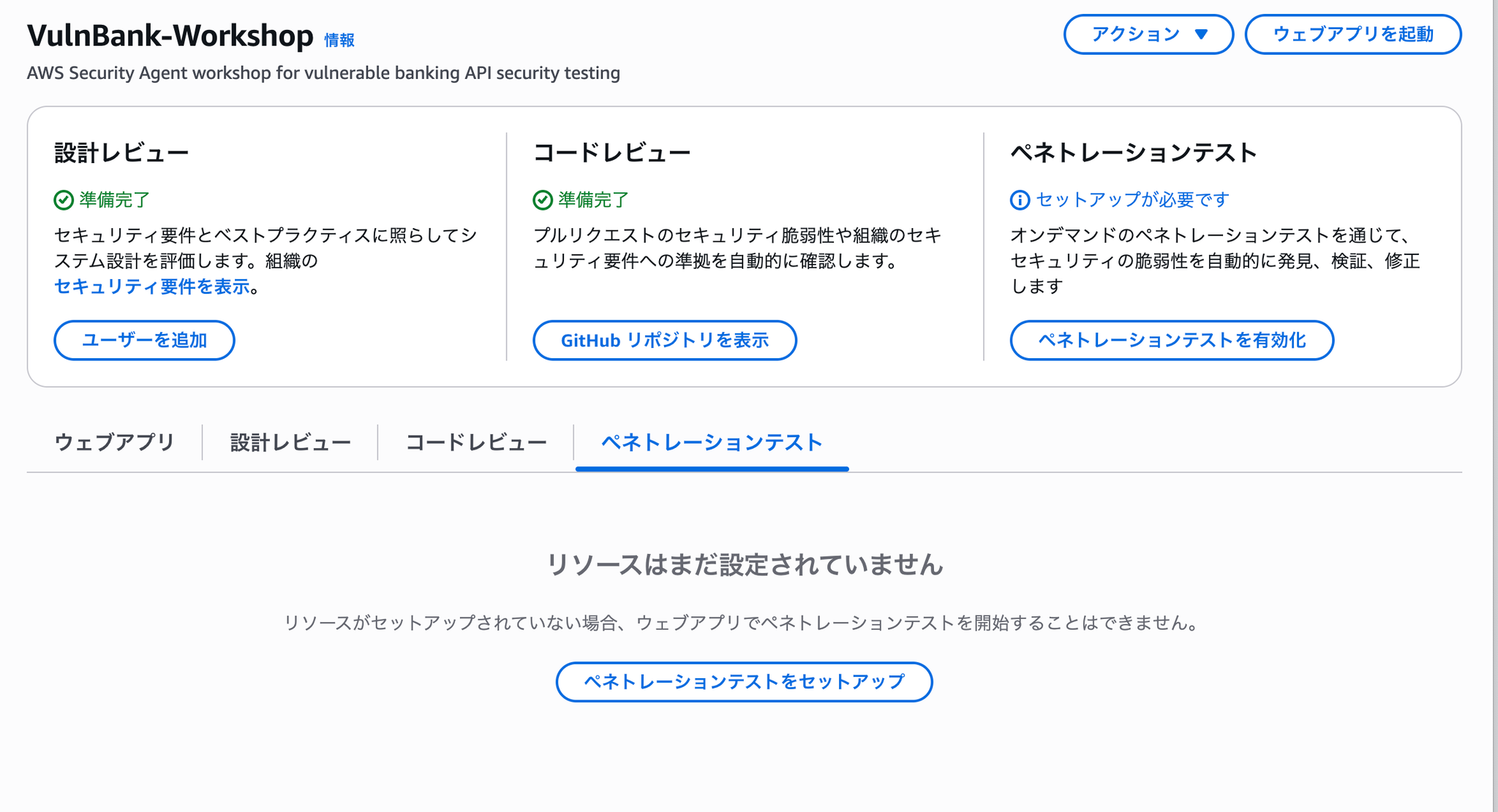 はじめにAWS Security Agentの概要と特徴1. Design Review(設計レビュー)2. Code Security Review(コードセキュリティレビュー)3. Penetration Testing(ペネトレーションテスト)検証:自作アプリVulnBankを使った診断AWS Security AgentのセットアップCode reviewの設定Penetration Testの設定今回のまとめ